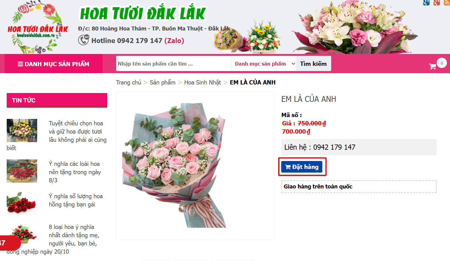 Bước 4. Hoa Tươi Đắk Lắk sẽ xác nhận đơn hàng đã được đặt thành công. Nhân viên của Hoa Tươi Đắk Lắksẽ liên hệ và xác nhận với Khách Hàng về đơn hàng của Khách Hàng vừa mới đặt